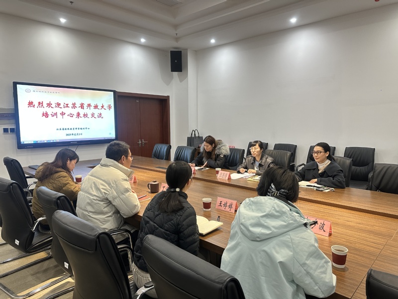 2025年12月3日下午,江苏开放大学培训中心副主任张曌曌、培训中心培训科科长晏冰清一行莅临我校,与我校继续教育学院围绕非学历教育与社会培训工作的创新与发展进行专题交流与研讨。双方旨在通过经验互鉴,探索新时期继续教育高质量发展的有效路径。我校继续教育学院院长丁宝龙、副院长王婷婷出席座谈会议。